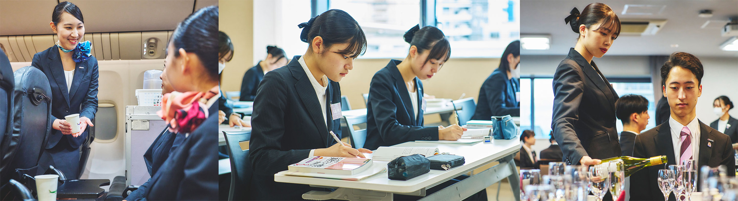 「航空ビジネス」「ホテル・ブライダル実務」「観光ビジネス」「グローバルビジネス」「リテールサービス」のいずれか