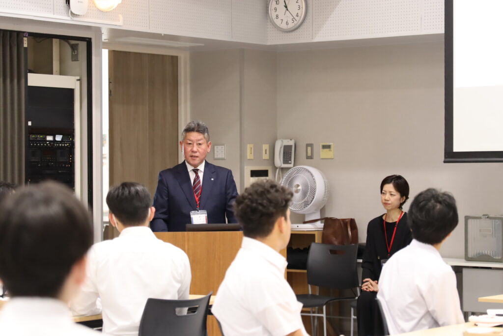 創業以来、化粧品を中心とする「美の創造企業」として事業を展開されてきたコーセー化粧品販売株式会社様。まず授業の冒頭では、その企業姿勢や取り組みについてご講話いただき、同社が長年にわたり「美」と誠実に向き合い続けてこられた歩みを知ることができました。