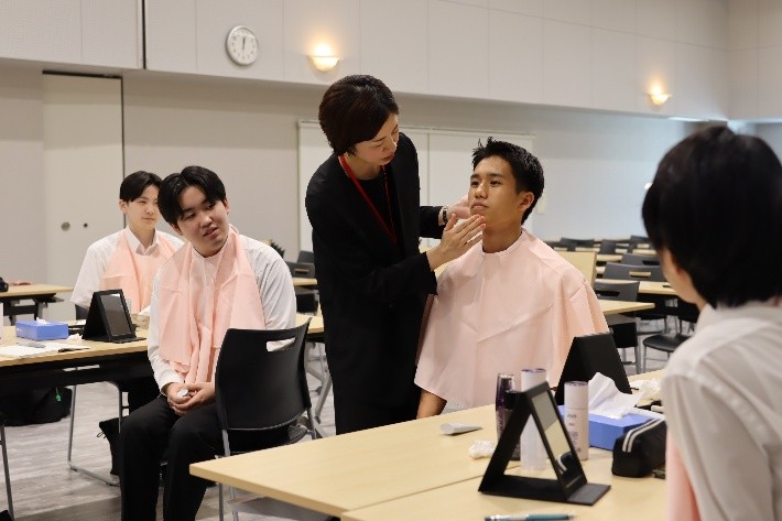 学生たちは、「第一印象は3秒で決まる」という言葉を胸に、清潔感や好感度を意識する大切さを実感。社会人として必要なセルフケアの知識とスキルを学び、少しの工夫で自信につながることを体感する貴重な時間となりました。