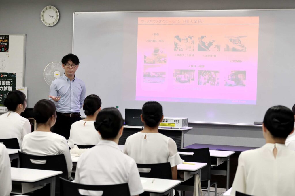 また本校では、今年の6月に国内研修の一環として株式会社ANA Cargo様を訪問し、国際航空貨物業務の現場を直接見学させていただいております。実際の空港での流れを体感した上での今回の連携授業は、理解をさらに深める貴重な機会となりました。