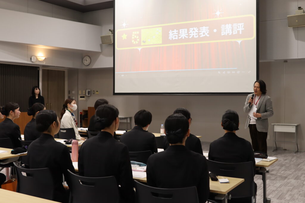 新静岡セノバ様の現役コンシェルジュの方をはじめとする3名の皆様を審査員としてお迎えし、コンシェルジュ科1年生およびコンシェルジュコース2年生による館内アナウンスオーディションを開催しました。