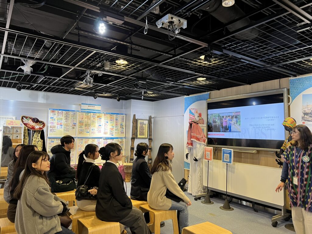 JICA地球ひろばでは、体験ゾーンの展示見学を通して、世界が直面するさまざまな課題や国際協力の取り組みについて学びました。また、JICA海外協力隊として実際にメキシコに派遣されていた方の体験談を伺い、文化や価値観の違いを超えて、人と人がつながる国際協力の意義について理解を深めました。