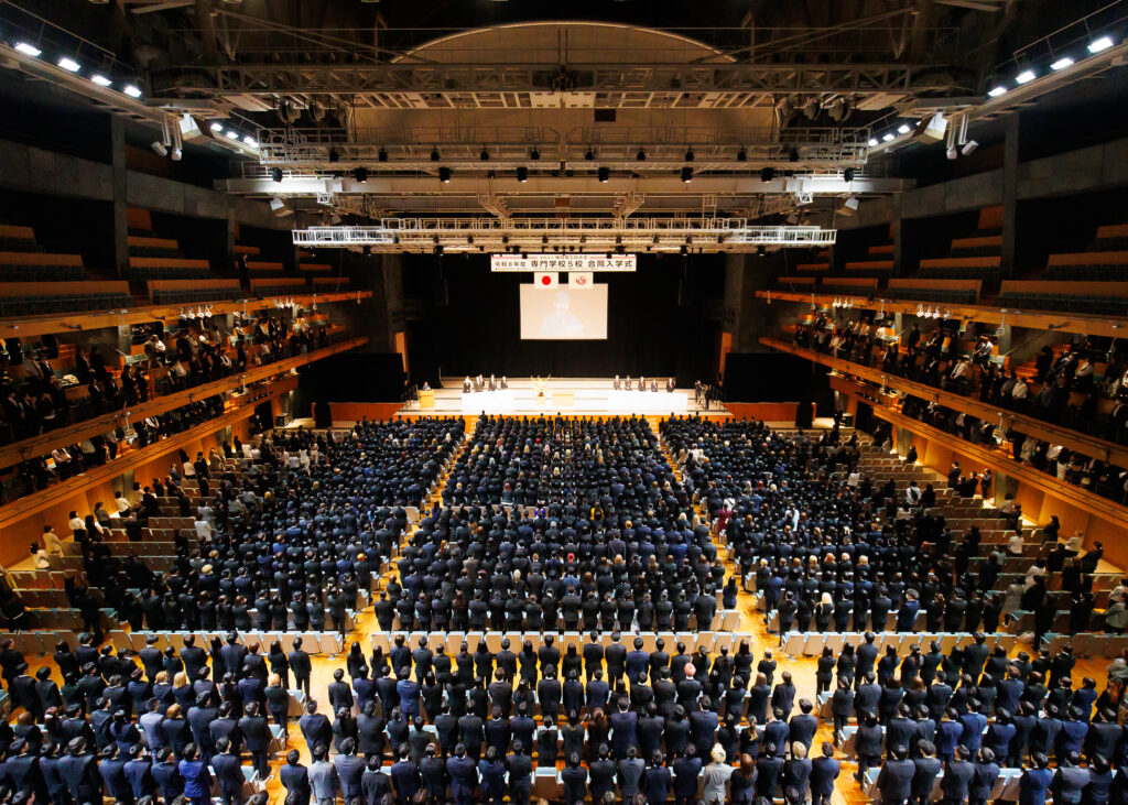 今年度もグループ専門学校5校合同での開催となり、1,351名の新入生を迎える盛大な式典となりました。